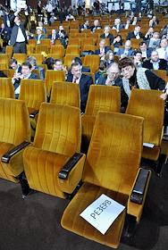 Режиссер Павел Лунгин (справа) во время съезда партии "Правое дело" в Академии наук РАН.