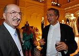 Председатель совета директоров компании "Корпорация "Биоэнергия" Давид Якобашвили (слева) и архитектор Сергей Чобан (справа) на выставке коллекции нарядов и ювелирных украшений голливудской актрисы Элизабет Тейлор. Коллекцию представил аукционный дом Christies в ГУМе.