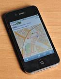 Мобильный телефон (смартфон) Iphone 4 с изображением карты на экране.