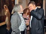 Министр образования России Андрей Фурсенко (слева) и тележурналист Владимир Познер (справа) на праздновании дня рождения радиостанции "Эхо Москвы" в Галерее искусств Зураба Церетели.