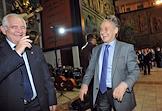 Директор Московского НИИ неотложной детской хирургии и травматологии Леонид Рошаль (слева) и поэт Андрей Дементьев (справа) на праздновании дня рождения радиостанции "Эхо Москвы" в Галерее искусств Зураба Церетели.