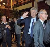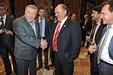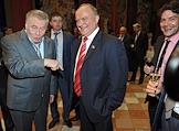 Лидер Либерально-демократической партии России (ЛДПР), заместитель председателя Государственной думы России Владимир Жириновский (второй слева) и лидер Коммунистической партии России (КПРФ) Геннадий Зюганов (четвертый слева) на праздновании дня рождения радиостанции "Эхо Москвы" в Галерее искусств Зураба Церетели.