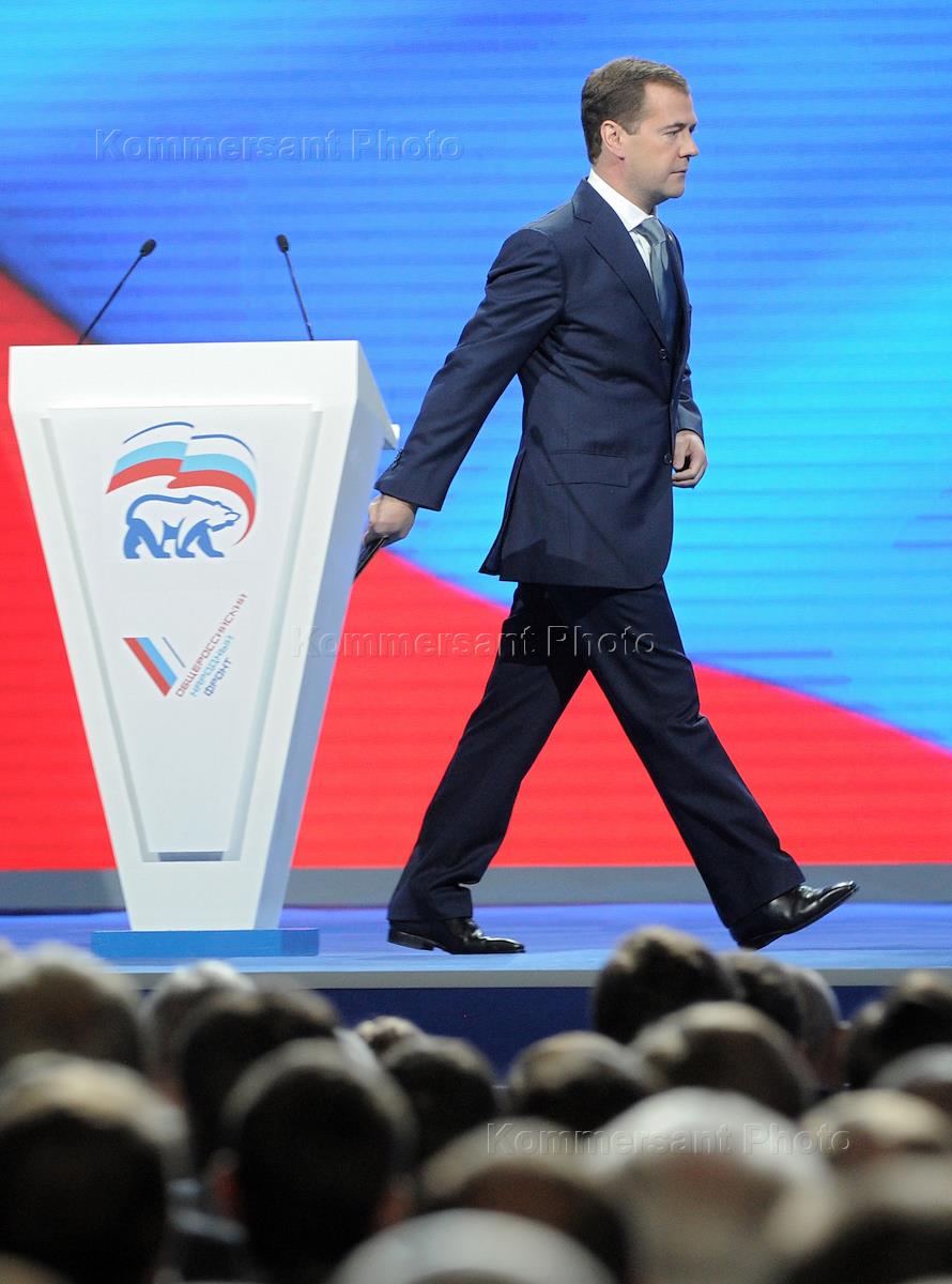 XII Congress of the United Russia Russian political party in Luzhniki. Russian Russian President Dmitry Medvedev (centre) at a meeting of the Congress.