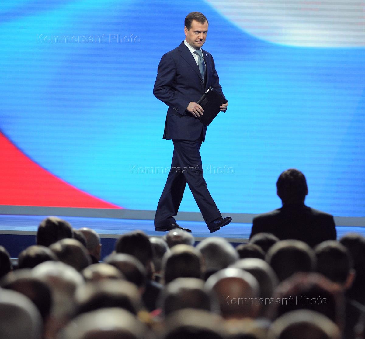 XII Congress of the United Russia Russian political party in Luzhniki. Russian Russian President Dmitry Medvedev (centre) at a meeting of the Congress.