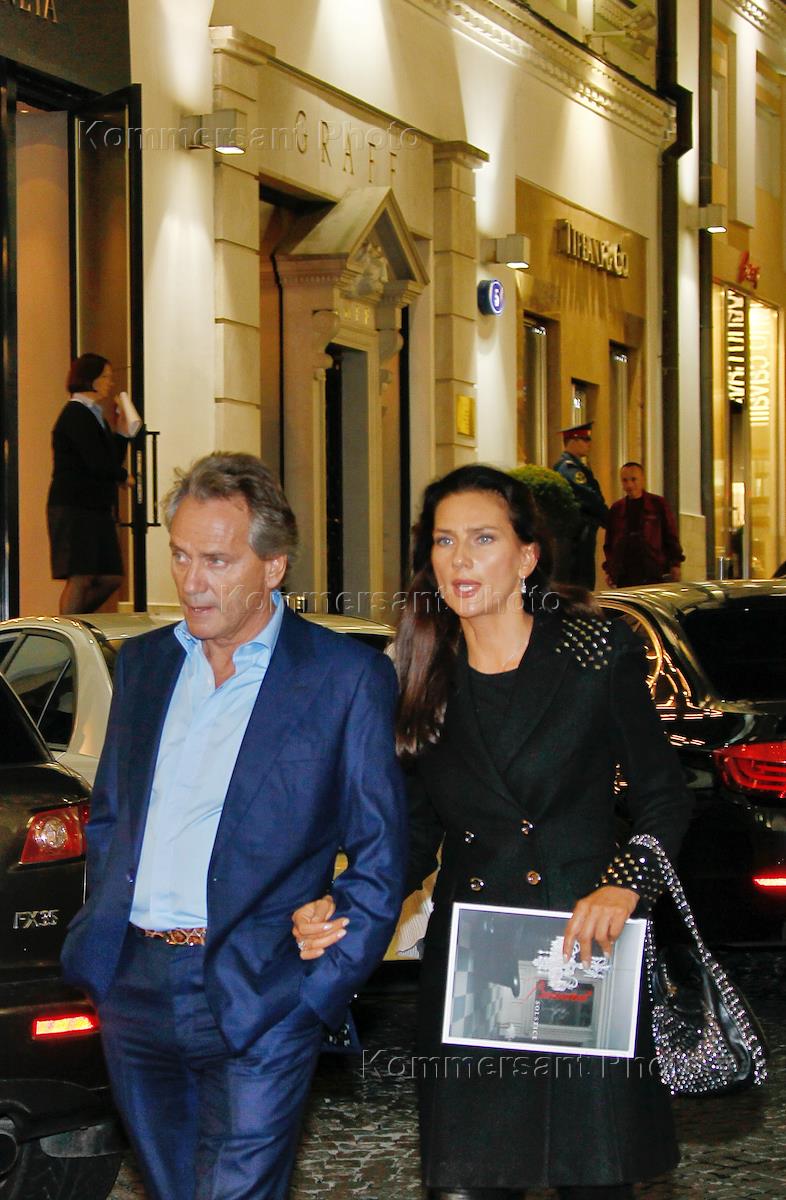 Член Совета директоров благотворительного фонда "Федерация" Владимир Киселев (слева) и патронесса благотворительного фонда “Федерация” Елены Север (справа) на церемонии открытия бутика Tom Ford в Третьяковском проезде.