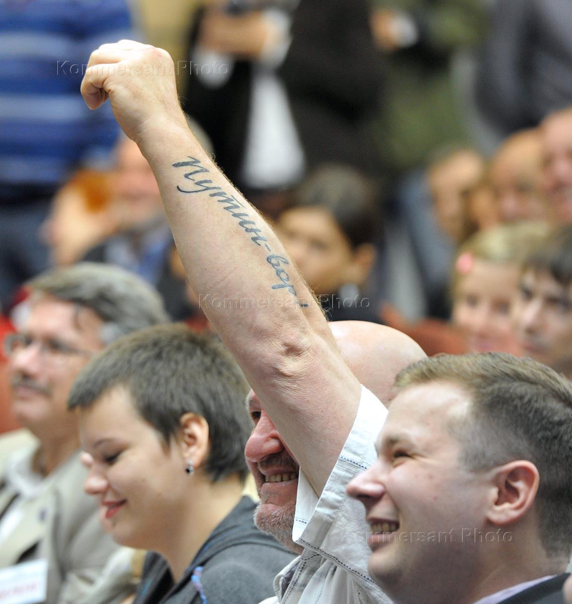 Татуировка "Путин вор" на руке участника съезда Партии народной свободы "За Россию без произвола и коррупции".