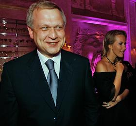 Заместитель руководителя департамента культуры Москвы Сергей Капков (слева) и телеведущая Ксения Собчак (справа) на After party GQ в ресторане Baccarat.