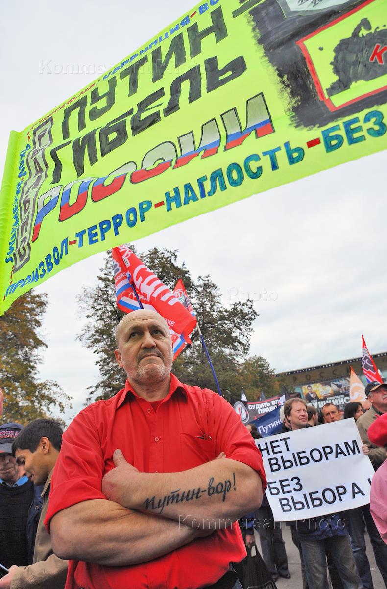 Митинг активистов комитета пяти требований с требованием отставки действующей власти прошел на Пушкинской площади. Плакат "Путин! Бери шинель, иди домой!".