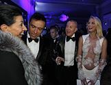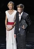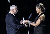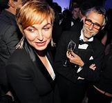 Президент издательского дома Conde Nast Карина Добротворская (слева) и заведующий отделом культуры издательского дома (ИД) "Коммерсантъ" Алексей Тарханов (справа) на церемонии вручения премии журнала GQ "Человек года 2011". Церемония прошла в Российском академическом молодежном театре (РАМТ).