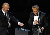 Актер Григорий Добрыгин (справа) на церемонии вручения премии журнала GQ "Человек года 2011". Церемония прошла в Российском академическом молодежном театре (РАМТ).
