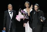 Слева направо: ресторатор Аркадий Новиков, актриса Ингеборга Дапкунайте и генеральный директор телеканала "Дождь. Optimistic Channel" Наталья Синдеева на церемонии вручения премии журнала GQ "Человек года 2011". Церемония прошла в Российском академическом молодежном театре (РАМТ).