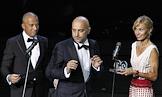 Слева направо: журналист Галина Мазаева, солист группы "Моральный кодекс" Сергей Мазаев и ресторатор Аркадий Новиков на церемонии вручения премии журнала GQ "Человек года 2011". Церемония прошла в Российском академическом молодежном театре (РАМТ).