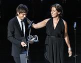 Дизайнер Александр Терехов (слева) и телеведущая Сати Спивакова (справа) на церемонии вручения премии журнала GQ "Человек года 2011". Церемония прошла в Российском академическом молодежном театре (РАМТ).