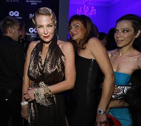 Актриса, режиссер, сценарист Рената Литвинова (слева) и имиджмейкер Мария Захарова (в центре) на церемонии вручения премии журнала GQ "Человек года 2011". Церемония прошла в Российском академическом молодежном театре (РАМТ).