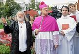 Глава католической кафедры в Москве архиепископ Паоло Пецци (слева) на церемонии открытия памятника блаженной Матери Терезе Калькуттской, работы скульптора Григория Потоцкого на улице Малая Грузинской.