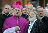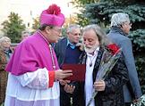 Глава католической кафедры в Москве архиепископ Паоло Пецци (слева) и скульптор Григорий Потоцкий (справа) на церемонии открытия памятника блаженной Матери Терезе Калькуттской, работы Григория Потоцкого на улице Малая Грузинской.