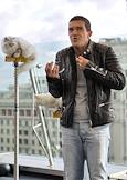 Голливудский актер Антонио Бандерос перед началом пресс-конференции, посвященной выходу в прокат мультфильма "Кот в сапогах 3 D". Пресс-конференция прошла в отеле "Ритц Карлтон".