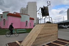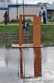 IV Московская биеннале современого искусства. Посетитель на инсталяции ландшафтного парка "Южное Бутово" проекта Дома художника "Южное Бутово/Спальный район".