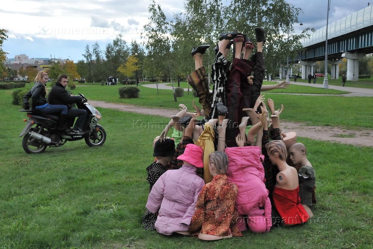 IV Московская биеннале современого искусства. Посетители на инсталяции ландшафтного парка "Южное Бутово" проекта Дома художника "Южное Бутово/Спальный район".
