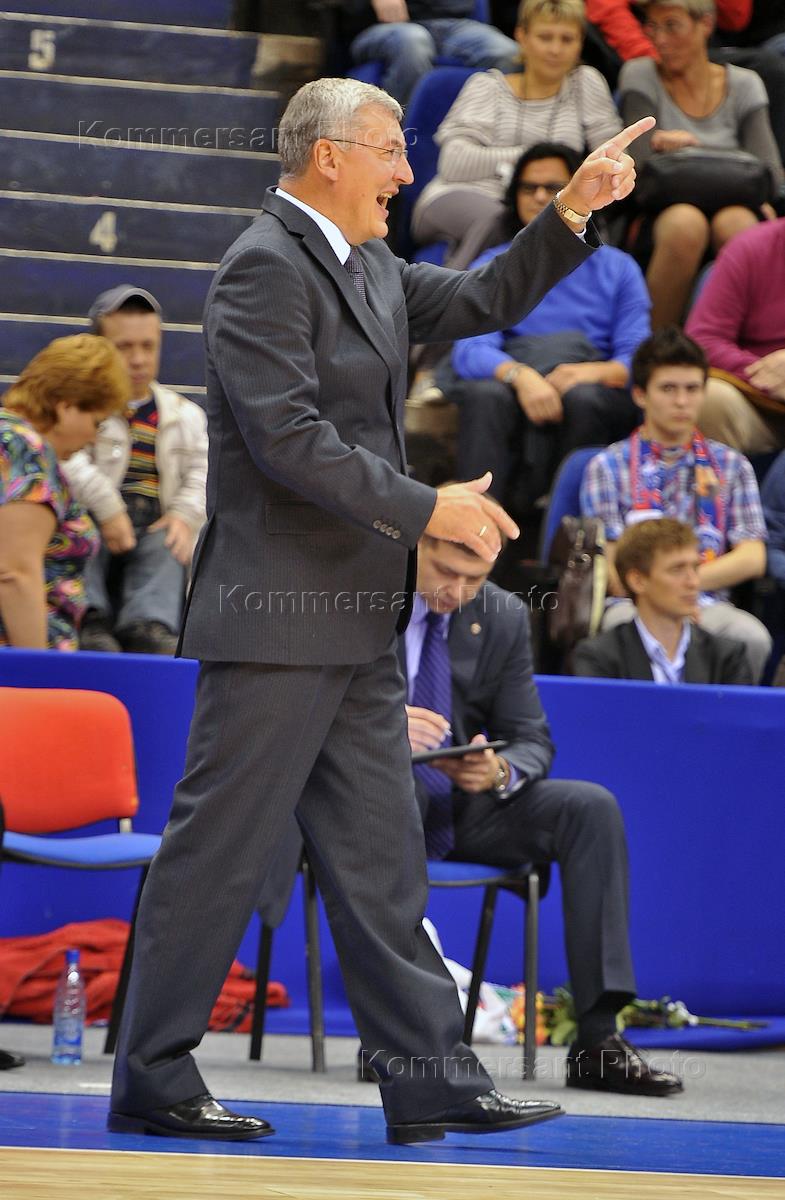 Международный турнир по баскетболу "Кубок Александра Гомельского". Полуфинальный матч между командами ЦСКА (Россия, Москва) и "Жальгирис" (Литва). Главный тренер БК ЦСКА Йонас Казлаускас во время матча.