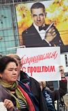 Участники акции движения "Старшее поколение" на Новопушкинском сквере. Плакат с надписью "Попрощаемся с прошлым!".