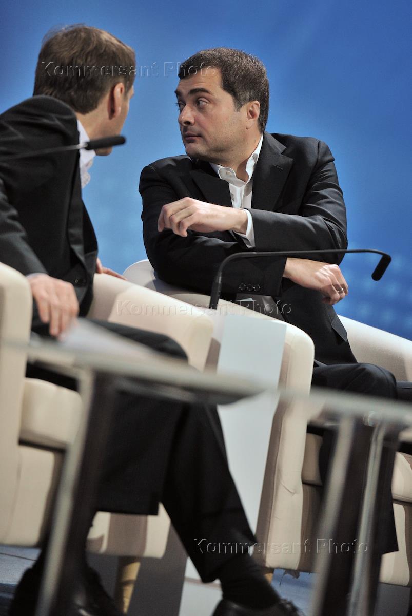 Первый заместитель руководителя администрации президента России Владислав Сурков на VI Всероссийском Медиафоруме в Центре международной торговли (ЦМТ).