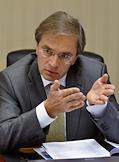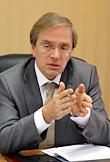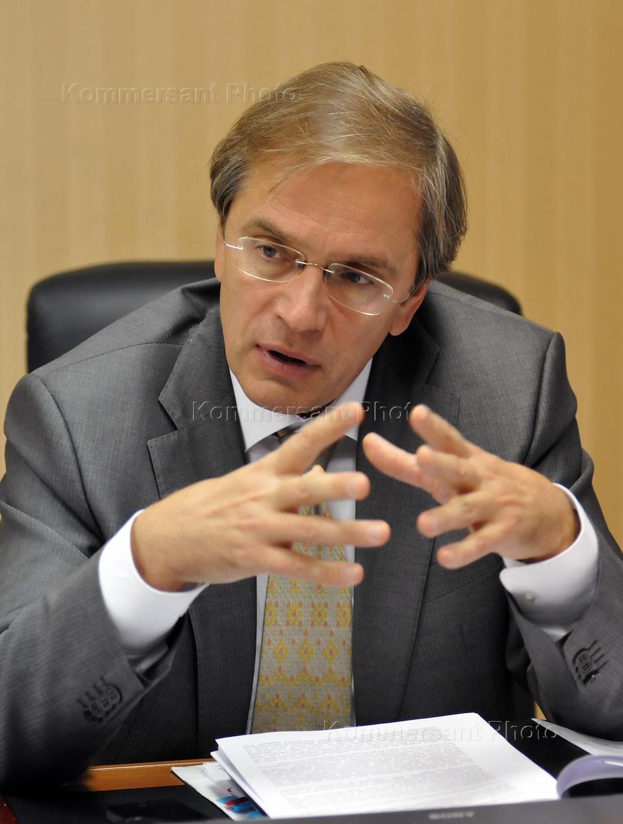 Глава Федеральной службы России по финансовым рынкам Дмитрий Панкин во время интервью.