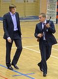 Баскетболист Андрей Кириленко (слева) и генеральный директор клуба ЦСКА Андрей Ватутин (справа) на презентации нового состава баскетбольной команды ЦСКА. Презентация прошла на главной арене УСК ЦСКА.