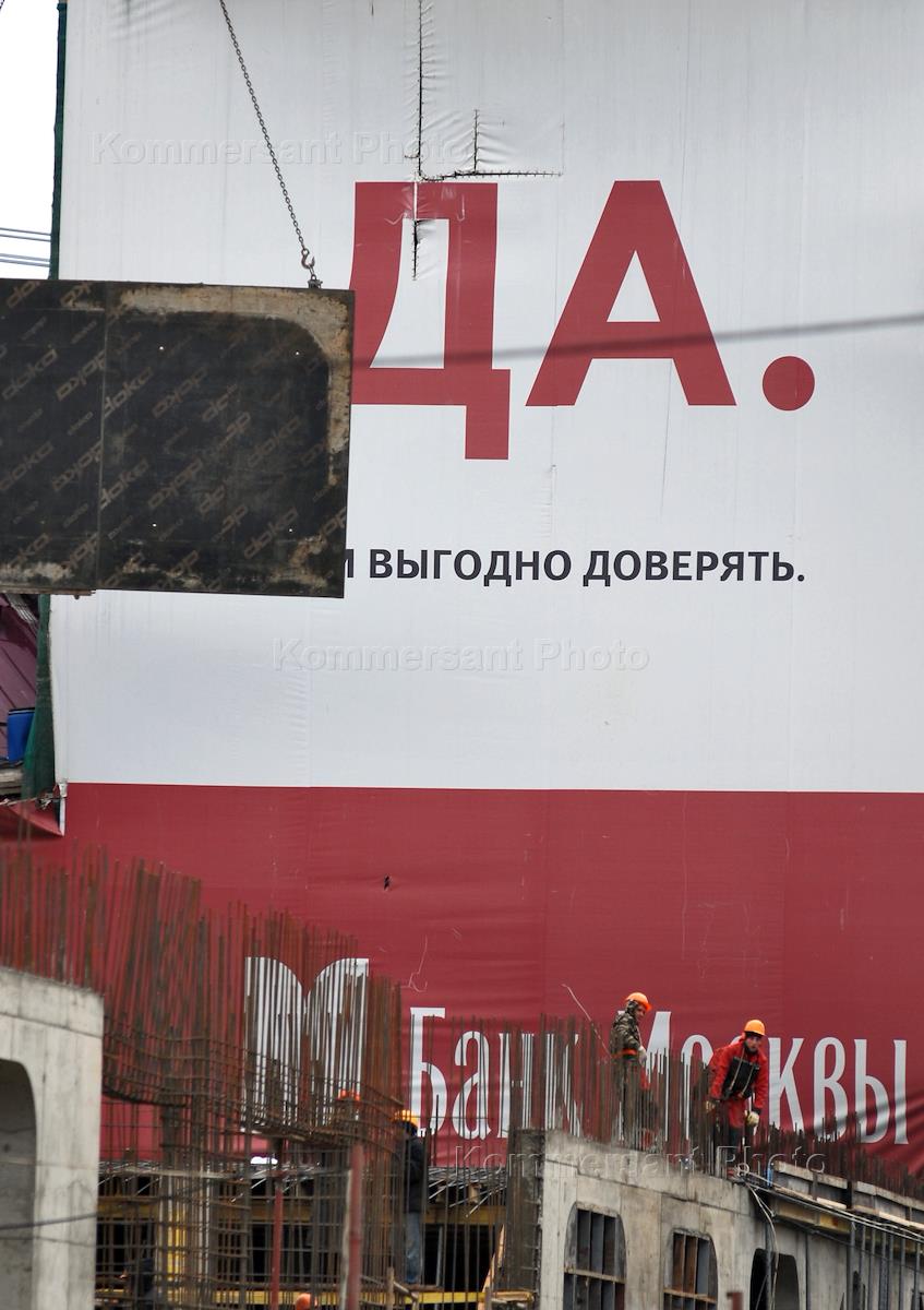 Жанровая фотография. Реклама "Банка Москвы" на улице города.