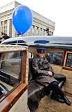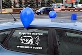 Пикет общества "Синих ведерок" на площадке у дома 10 на проспекте Академика Сахарова. Надпись на стекле автомобиля "Я против партии жуликов и воров".