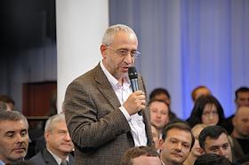 Телеведущий Николай Сванидзе во время встречи президента России Дмитрия Медведева со сторонниками в центре Digital October.