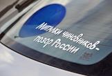 Пикет общества "Синих ведерок" у Бородинской панорамы на Кутузовском проспекте. Надпись на заднем стекле автомобиля "Мигалки чиновников - позор России".