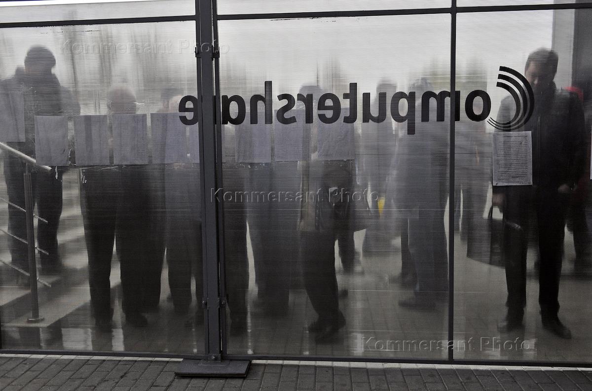 Очередь желающих продать акции компании "Норильский никель" у офиса компании Computershare.