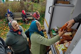 Жители деревень Кореличского района покупают продукты в автолавке.