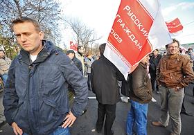 Блогер Алексей Навальный (слева) на митинге под лозунгом "Хватит кормить Кавказ!". Митинг прошел на Болотной площади.