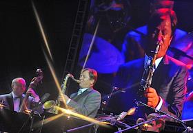 Джазовый музыкант Игорь Бутман во время своего юбилейного концерта. Концерт прошел Государственном Кремлевском Дворце.