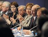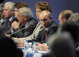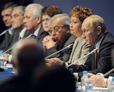 Председатель правительства России Владимир Путин (второй справа) на расширенном заседании правления Торгово-промышленной палаты (ТПП) России. Заседание прошло в Центре международной торговли (ЦМТ).
