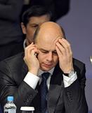 Исполняющий обязанности министра финансов России Антон Силуанов (слева) и директор Российского микрофинансового центра, президент Национального партнерства участников микрофинансового рынка (НАУМИР) Михаил Мамута (второй слева) на расширенном заседании правления Торгово-промышленной палаты (ТПП) России. Заседание прошло в Центре международной торговли (ЦМТ).