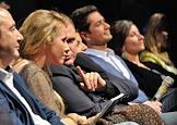 Телеведущая Ксения Собчак (вторая слева) и главный редактор журнала "Русский пионер", специальный корреспондент издательского дома "Коммерсантъ" Андрей Колесников (в центре) на премьере специального литературного проекта от журнала "Русский Пионер" на телеканале "ДОЖДЬ".
