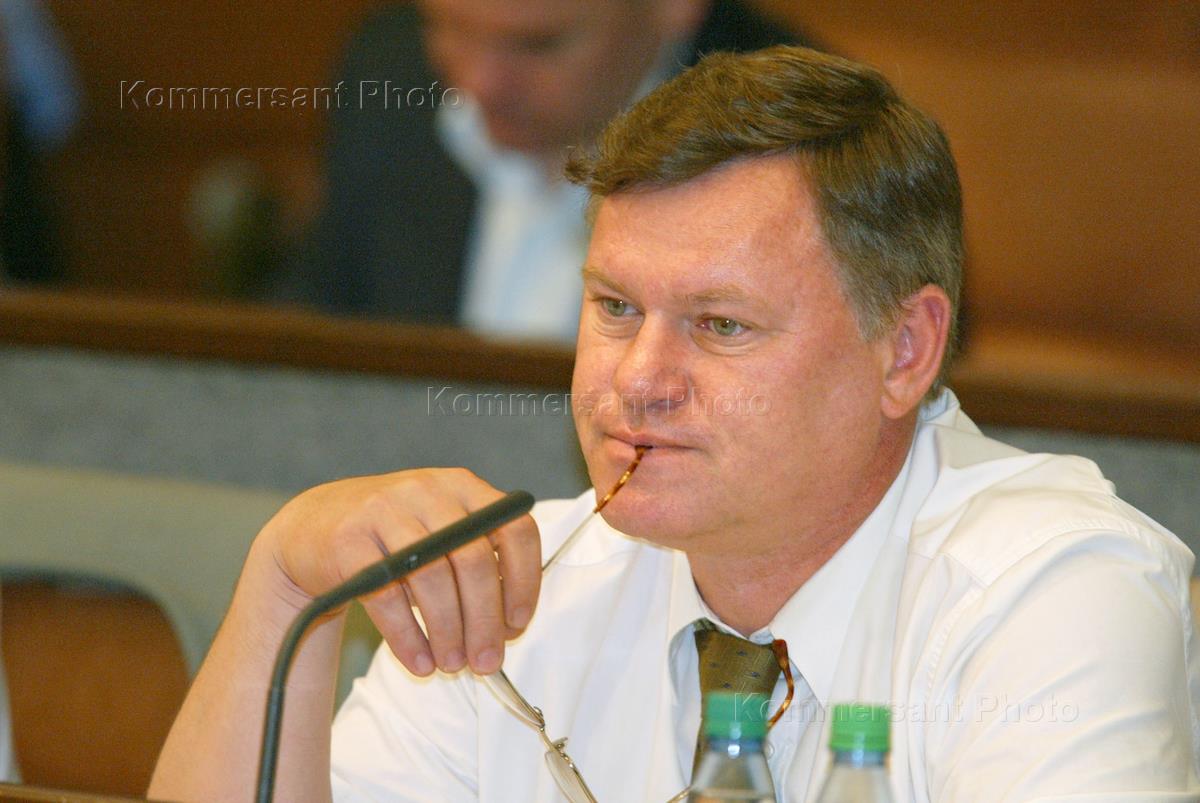Vice Governour of the Novgorod Oblast Gennady Burbulis (right) attends a session of tyhe Federation Council (upper house of the Russian parliament).
