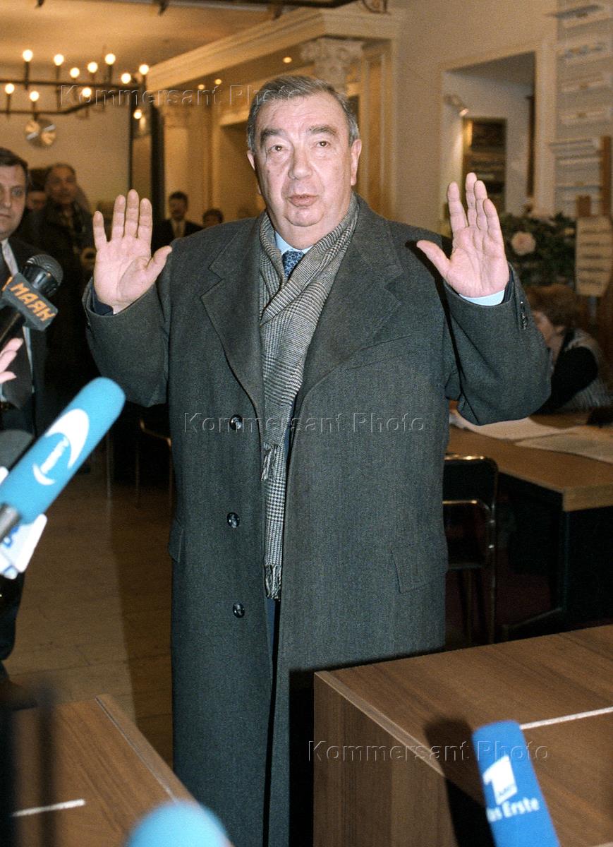 Yevgeni Primakov, leader of the political party Fatherland/All Russia queueing to vote in the State Duma elections. Twenty seven political parties took in the race, in which only six passed the necessary 5% barrier in order to make it into the Duma.