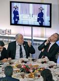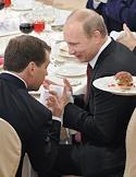 Президент России Дмитрий Медведев (слева) и председатель правительства России Владимир Путин (справа) на Государственном приеме по случаю празднования Дня народного единства в здании выставочного центра "Нижегородская ярмарка".