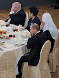 Председатель правительства России Владимир Путин (в центре слева) и Патриарх Московский и всея Руси Кирилл (в центре справа) на Государственном приеме по случаю празднования Дня народного единства в здании выставочного центра "Нижегородская ярмарка".