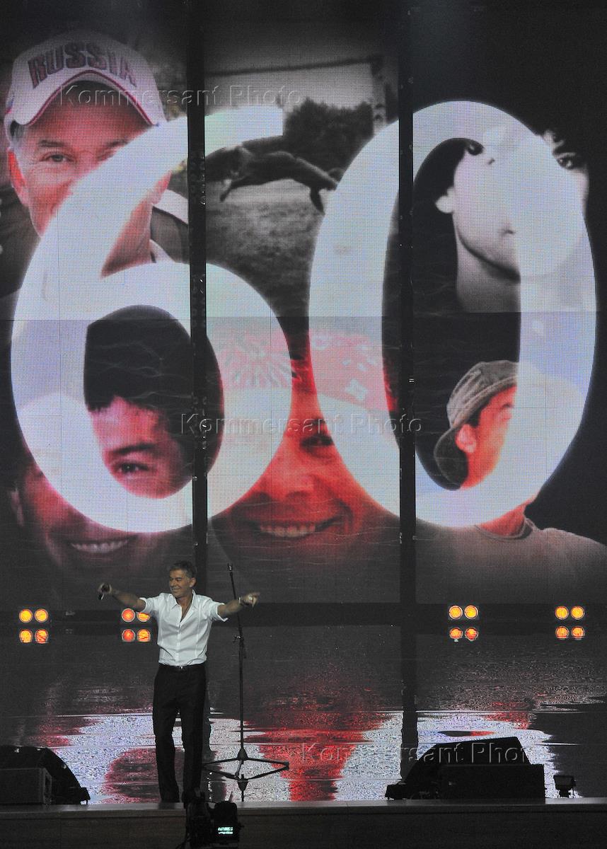 Певец Олег Газманов во время выступления на сольном юбилейном концерте, посвященному своему 60-летию. Концерт прошел в концертном зале Crocus City Hall.