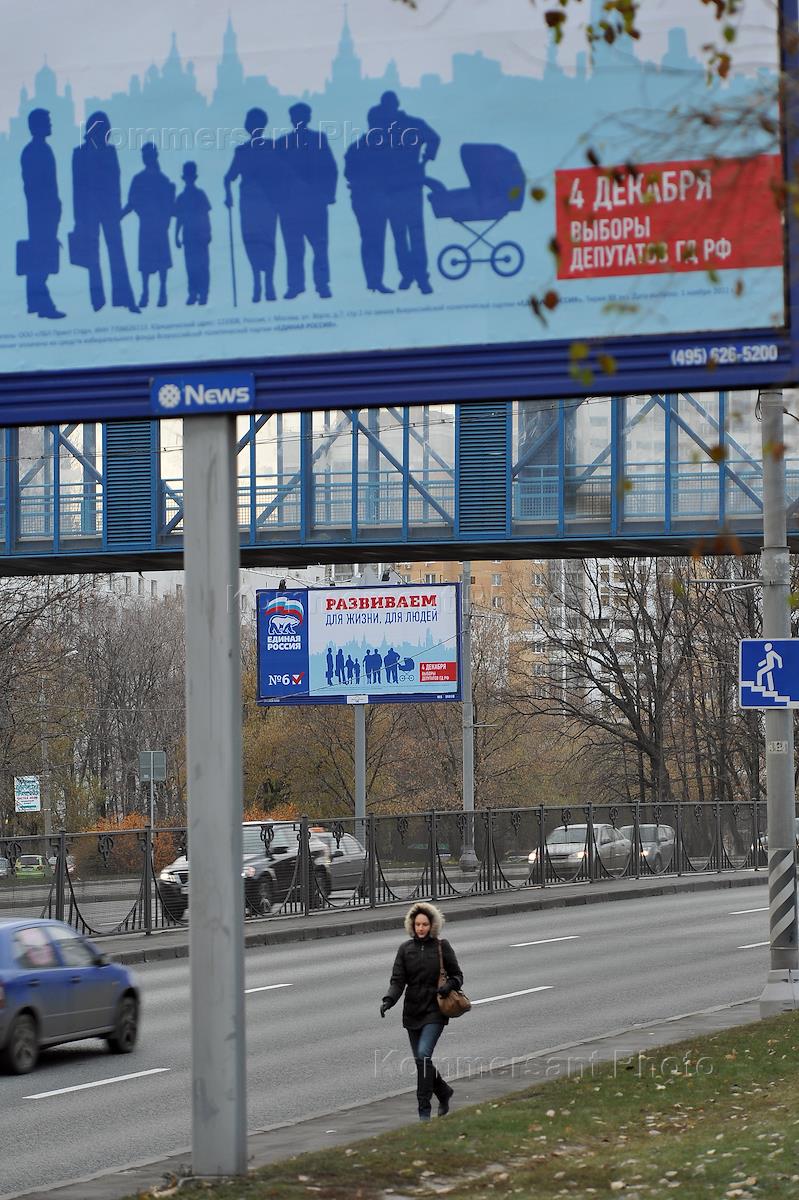 Предвыборные щиты: Центизберкома, Правителсьтва Москвы, партии "Единая Россия".