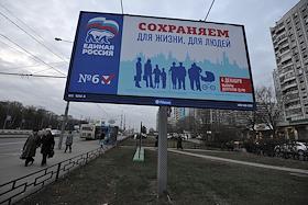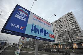 Предвыборные щиты: Центизберкома, Правителсьтва Москвы, партии "Единая Россия".