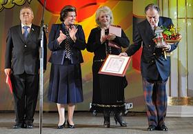 Слева направо: первый заместитель председателя Совета Федерации России Александр Торшин, первая женщина-космонавт, депутат Ярославской областной думы от партии "Единая Россия" Валентина Терешкова, заместитель председателя Государственной думы России Надежда Герасимова и глава Международного совета российских соотечественников Петр Шереметьев на церемонии награждения лауреатов VI Национальной премии общественного признания достижений граждан России "Россиянин года". Церемония прошла в большом конференц-зале администрации президента Россиии.