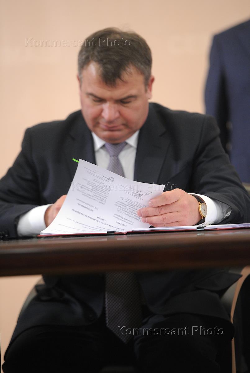 Deputy Prime Minister of Russia Sergey Ivanov and Minister of Defence of Russia Anatoly Serdyukov (right)at the signing ceremony of military shipbuilding contracts. The signing took place at the Sevmash JSC.