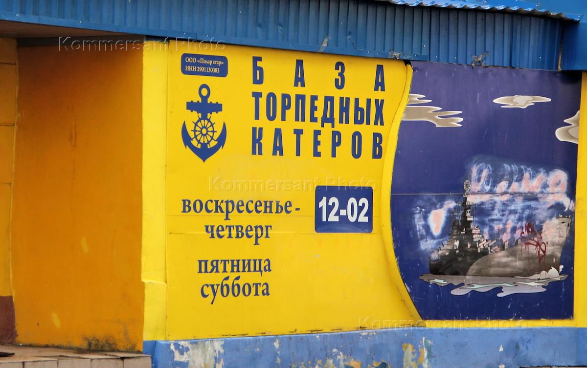 Виды Архангельска. Вывеска кафе "База торпедных катеров".