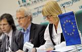 Вице-председатель Социал-демократической партии Эстонии Индрек Саар (слева), руководитель миссии наблюдателей Парламентской ассамблеи Совета Европы (ПАСЕ) на предстоящих выборах в Госдуму Тини Кокс (в центре) и член миссии наблюдателей ПАСЕ Мариэтта де Пурбэ-Лендин (справа) во время пресс-конференции на тему: "Итоги визита в Россию". Пресс-конференция прошла в центральном офисе агентства "Интерфакс".